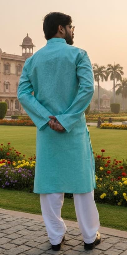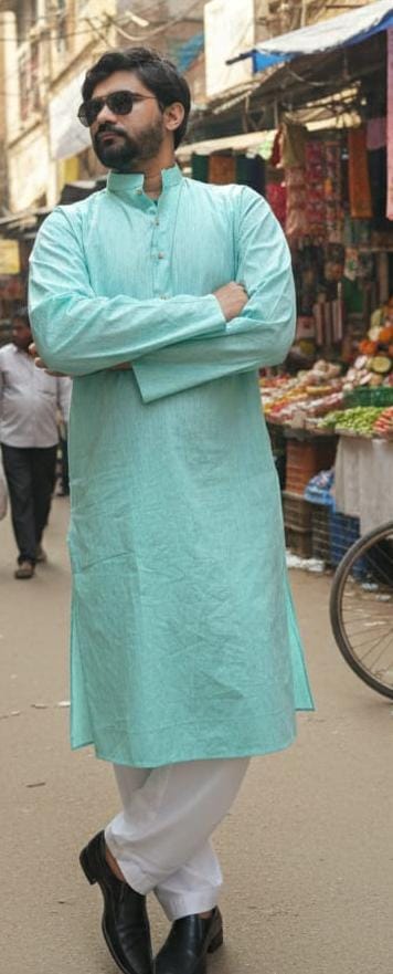 Product description: Cotton kurta with comfortable fit suitable for festivals, family functions or relaxed traditional looks.
